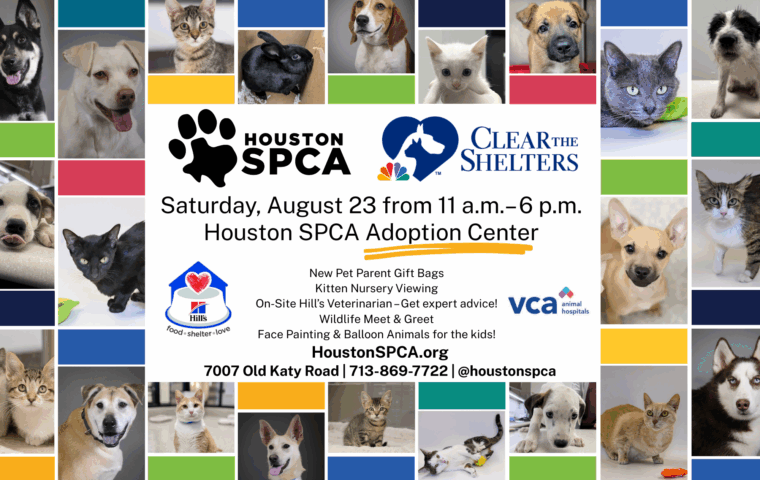 The Houston SPCA will host the Clear the Shelters pet adoption event at their William & Evelyn Griffin Campus for All Animals on Saturd...